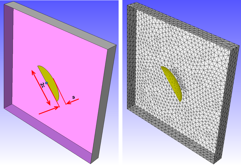 - Automatic meshing of the crack surface. Singular wedges or non-singular elements are supported